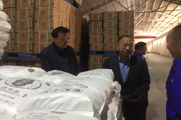 3月13日上午,集团公司党委书记、董事长孙刚德、总经理李奎锦上任伊始,便带领公司主管生产副总经理徐宪国,以及生产技术部、市场营销部、精盐分厂、采盐分厂负责人深入精盐分厂食用盐生产车间、中心化验室、原盐生产一线、放销现场调研,详细了解了原盐和食用盐生产工艺、产品种类、市场区域、销售价格等情况。