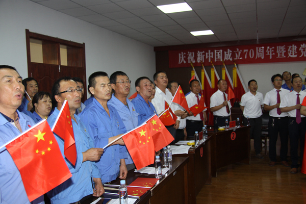 “我志愿加入中国共产党……为共产主义奋斗终身,随时准备为党和人民牺牲一切,永不叛党”,随着在场全体党员面对党旗庄严宣誓,本次活动正式拉开序幕。随后举行“不忘初心,牢记使命”主题党日活动,全体人员唱响《我和我的祖国》、《歌唱祖国》,唱出对祖国的热爱,唱出对祖国的祝福。